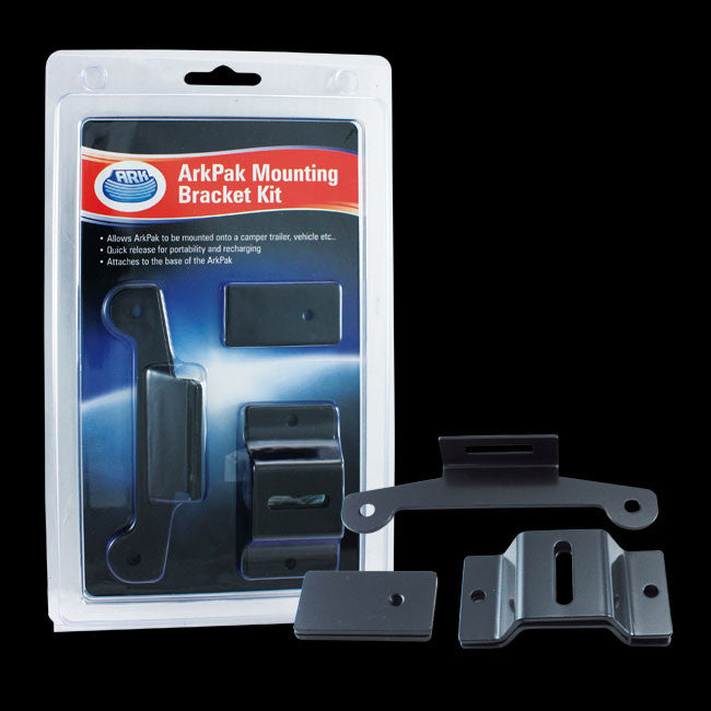 The ArkPak mounting bracket allows your ArkPak to be mounted into a vehicle, camper, trailer, etc. to ensure your ArkPak is securely held down to your vehicle while trekking through rough terrain. The brackets conveniently enable the ArkPak to slide out and back into place again so it is transportable when desired.